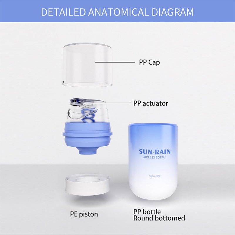 Mono PP Airless Bottle 50ml & 100ml with PP Spring, Round Base Design – Cosmetic Packaging