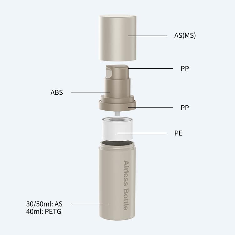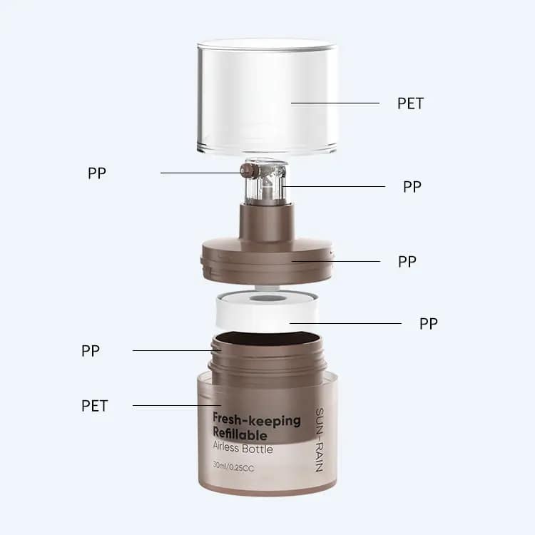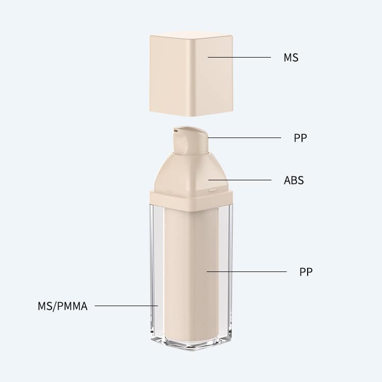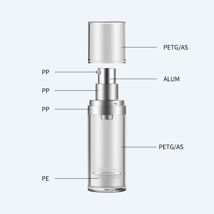Airless bottles are made up of two main parts: an inner chamber and an outer chamber. The inner chamber holds your product, while the outer chamber is made up of an airtight seal. This seal keeps air from getting into the bottle and mixing with what’s inside, so your product stays pure and fresh.